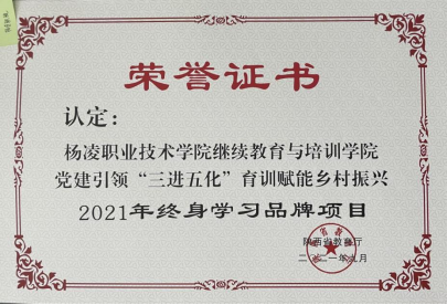 近日,学校“党建引领育训赋能乡村振兴”项目被全民终身学习活动领导小组、中国成人教育协会联合授予“2021年终身学习品牌项目”。这是继陕西省教育厅授予我校“党建引领‘三进五化’育训赋能乡村振兴”终身学习品牌项目后的又一殊荣。