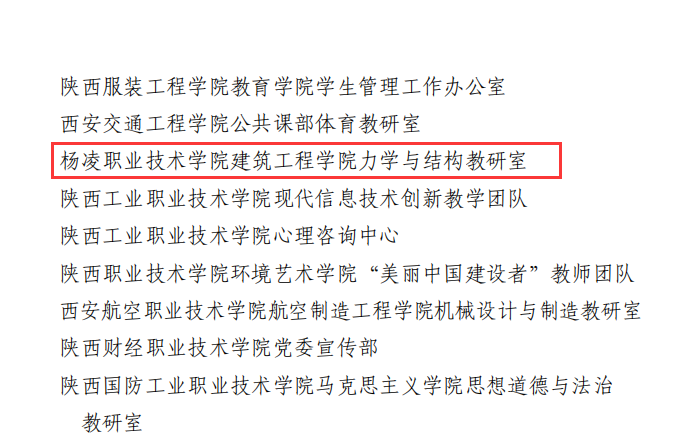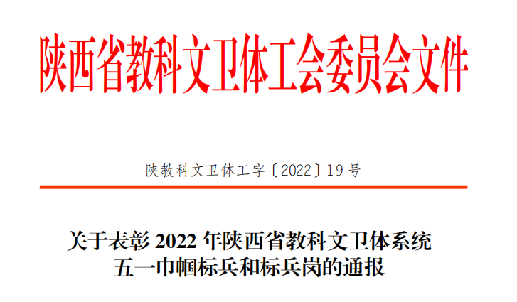 4月26日,陕西省教科文卫体工会下发通知,授予校建筑工程学院力学与结构教研室2022年度“陕西省教科文卫体系统五一巾帼标兵岗”荣誉称号,授予动物工程学院高睿老师、经济与贸易学院李博老师2022年度“陕西省教科文卫体系统五一巾帼标兵”荣誉称号希望受到表彰的先进集体和个人珍惜荣誉,再接再厉继续发挥示范引领作用,不断创造新的作出新的贡献。