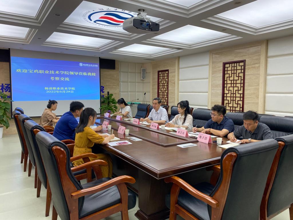 6月28日上午,宝鸡职业技术学院学生处处长孙明强一行6人来校考察交流。学生处处长陈军峰及相关老师座谈交流。