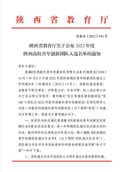 教师节|杨振华团队获得2022年度陕西高校青年创新团队