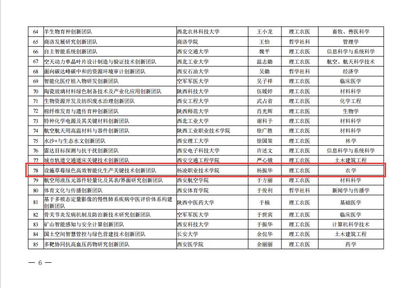92日,省教育厅公布了2022年度陕西高校青年创新团队入选名单,我校杨振华副教授牵头的设施草莓绿色高效智能化生产关键技术创新团队成功入选。