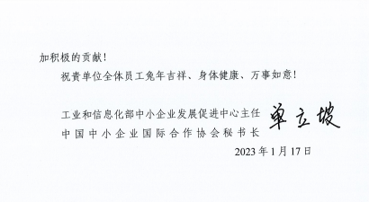 1月17日,新春佳节来临之际,工业和信息化部中小企业发展促进中心向我校发来感谢信,对我校在2022年给他们的支持和帮助表示衷心感谢,并希望在今后的工作中继续得到我校更大的支持。