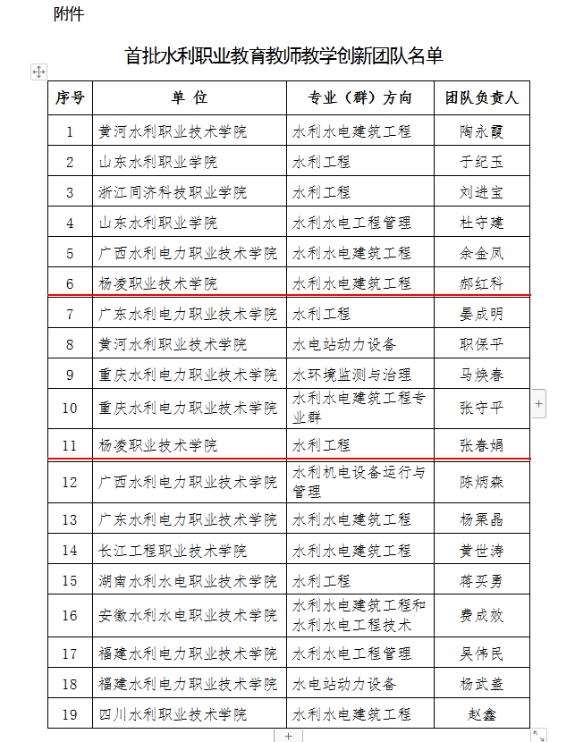 近日,中国水利教育协会公布了首批水利职业教育教师教学创新团队验收结果。水利工程学院水利工程、水利水电建筑工程两个专业创新团队通过验收。