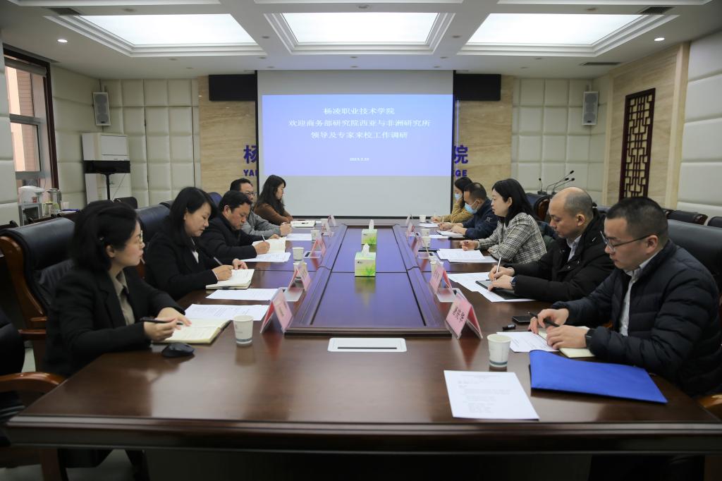 2月23日,商务部研究院西亚与非洲研究所副所长袁晓慧研究员一行在示范区外事办有关人员的陪同下来我校,就我校开展与非洲国家有关机构国际合作与交流工作等方面的情况进行调研。党委委员、宣传部部长裴红波,国际合作交流处处长杜斌、副处长杨雪霁等参加了本次调研座谈。