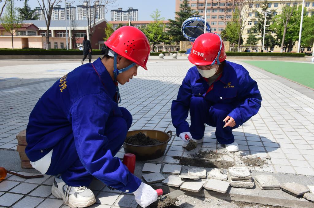 活动前期,学院师生认真检查了整个南校区道路地面,发现并标注多处地砖破损问题,采购了修补材料。修缮过程中,学生们结合带队老师示范的施工要点进行修补,排除安全隐患。在保证地砖平整度和固定性的同时,还根据环境特点和使用需求,调整了地砖的颜色和样式,使校园的整体美感更加协调。