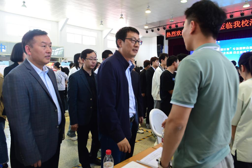 双选会期间,副校长蒋平江来到现场慰问招聘单位代表,询问招聘计划及往届毕业生在企业的发展状况等,希望校企双方加强合作力度,提高企业人才需求和学生就业岗位需求的契合度他还与现场求职学生交谈,关心其求职状况,鼓励大家转变观念,把握机会,面向基层,建功立业,实现人生价值。