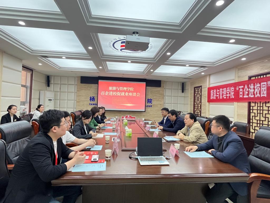 旅游与管理学院与开元森泊度假乐园等5家企业开展座谈,双方表示要建立校企合作的开放平台,真正实现校企双方合作共赢。