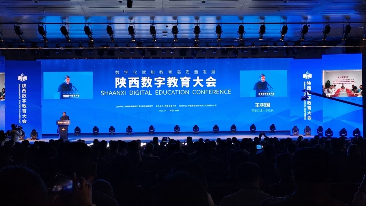 4月20日,由省委教育工委、省教育厅主办,西安交通大学承办的“陕西数字教育大会”在西交大创新港校区举行,会议以“现场+云端”相结合的形式进行。教育部科技与信息化司副司长舒华、西安交通大学校长王树国出席会议并致辞;省委教育工委副书记、省教育厅厅长王树声主持会议。我校副校长蒋平江、信息化建设与管理处处长夏浩军等到现场参加了活动。