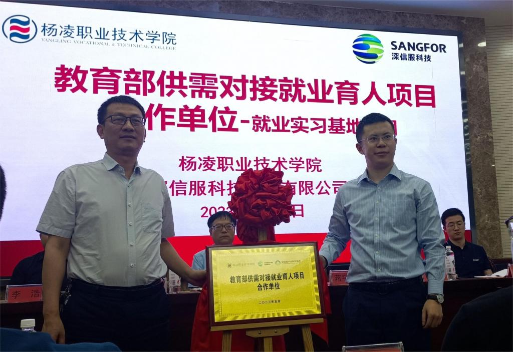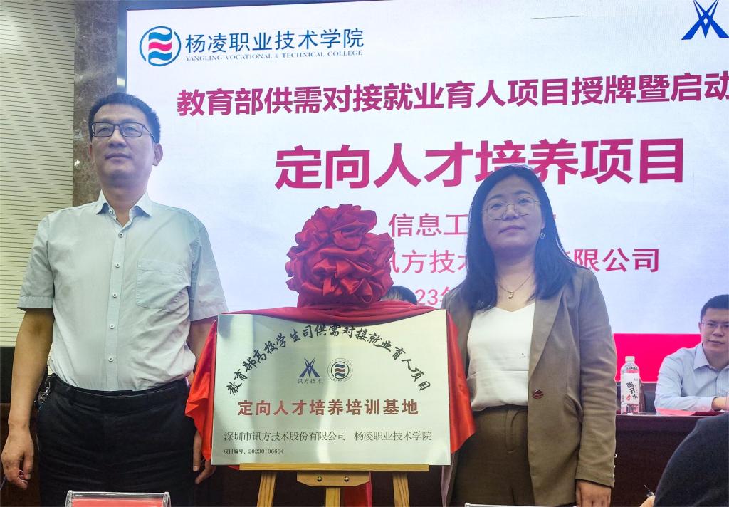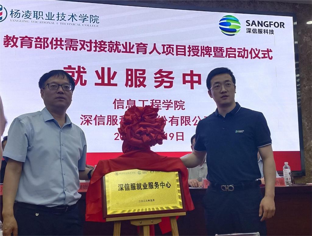 5月19日,学校举行教育部供需对接就业育人项目授牌暨启动仪式。副校长蒋平江,招生就业处处长李岩、信息工程学院院长陈高锋、党总支副书记吴高潮,深信服科技股份有限公司陕西区副总经理徐诗运、陕西区行业总监席鹏,深圳市讯方技术股份有限公司陕西教育事业部总经理王珊珊,以及信息工程学院师生代表等参加启动仪式