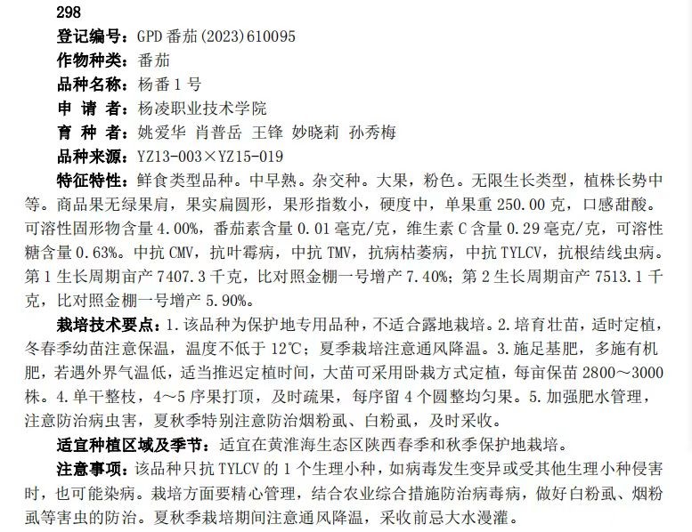 近日,由我校生物工程学院教师姚爱华及其蔬菜育种团队选育的番茄新品种“杨番1号”通过农业农村部品种登记。
