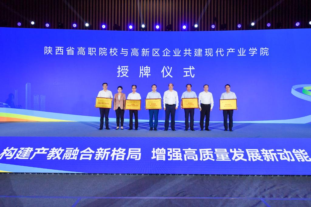 7月13日,由省委教育工委、省教育厅、西安市人民政府举办的教育科技人才统筹推进大会在西安高新国际会议中心举办。我校受邀参加高校科技成果展暨校企洽谈会,党委书记王周锁出席陕西省高职院校与高新区企业共建现代产业学院授牌仪式。