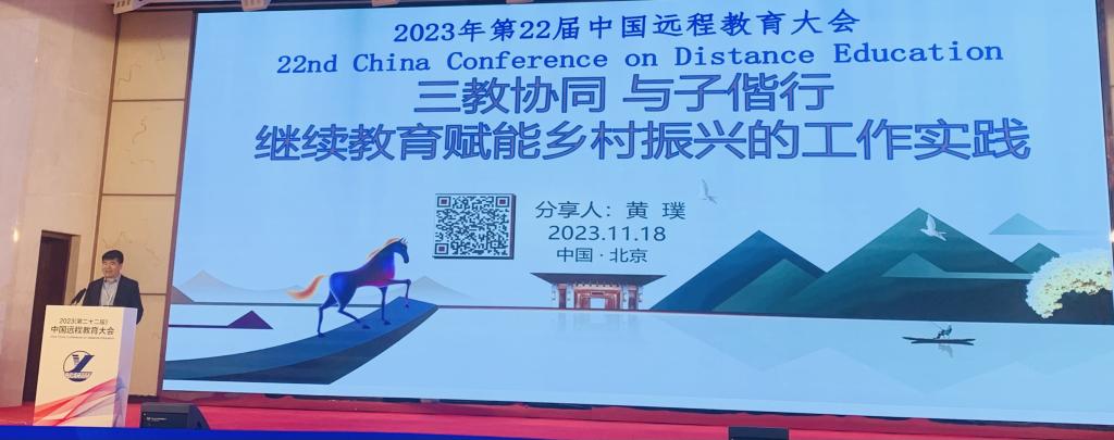 11月16日至19日,2023(第二十二届)中国远程教育大会在北京召开,我校继续教育与培训学院负责人在会上以“三教协同 与子偕行,继续教育赋能乡村振兴的工作实践”为主题,作工作经验交流。