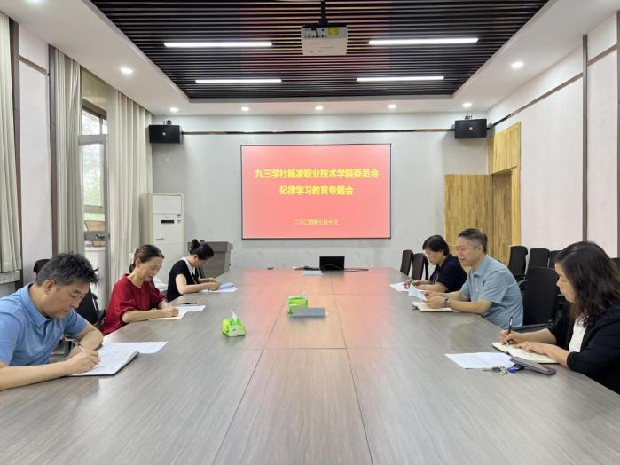7月10日,九三学社杨凌职业技术学院委员会召开纪律学习教育专题会议。九三学社全体委员参加会议。