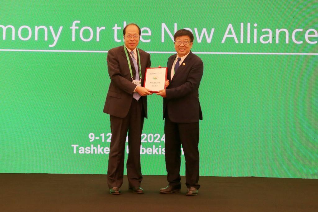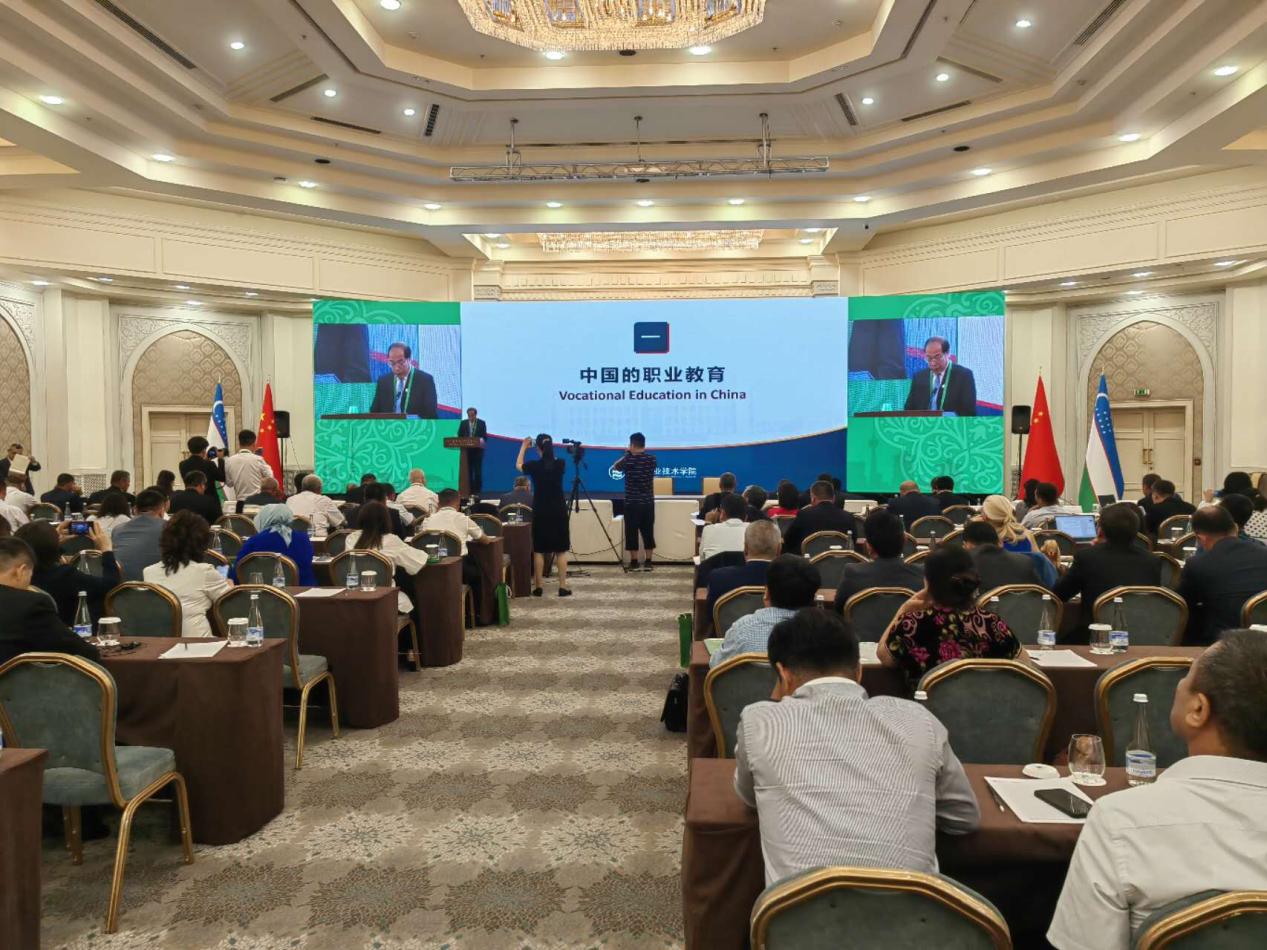 论坛期间,我校作为国内外唯一的高职院校成功加入丝绸之路农业教育科技合作论坛暨丝路联盟。仲伟周代表学校接受联盟对我校作为新成员单位的授牌,在乌兹别克斯坦农业部部长阿卜杜·拉赫莫诺夫、中国驻乌兹别克斯坦大使于骏和联盟秘书长吴普特的见签下,与塔什干国立农业大学签订了“专业技术培训项目合作协议”,并作了题为“职业教育赋能丝路农业科技高质量发展”的报告,受到国内外参会院校和单位的高度评价。