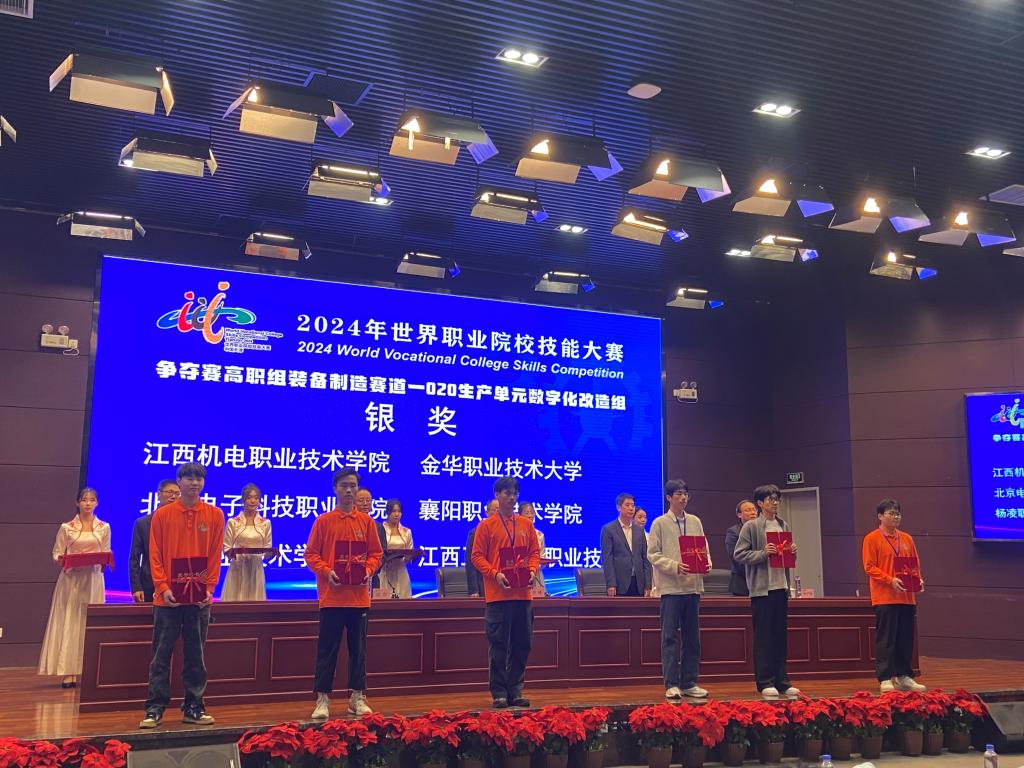 10月26日至31日,2024年世界职业院校技能大赛总决赛争夺赛装备制造赛道——生产单元数字化改造组在天津轻工职业技术学院成功举办,共有来自全国省、自治区、直辖市的60支队伍参赛。我校机电工程学院由教师李培东、张争刚指导,胡海斌、郑思远、郭济时、郭佳宾组成的学生团队,凭借扎实的专业技能,荣获银奖。