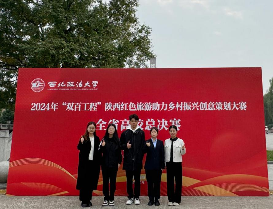 11月10日,2024年“双百工程”陕西红色旅游助力乡村振兴创意策划大赛总决赛在西北政法大学长安校区举行。来自全省64所高校的211支队伍参加大赛,经过校级预选赛、省级初赛层层选拔,前期评审、项目路演、现场答辩激烈角逐,由我校旅游与管理学院刘洁、张梦悦老师指导,张静楠、张彩风、朱宇姣、李帅、田睿卓尔5名学生组成的杨凌职院一队,以《陈炉传薪火,初心“印”千秋——新时代印台红旅样板》为作品参赛,荣获决赛一等奖。