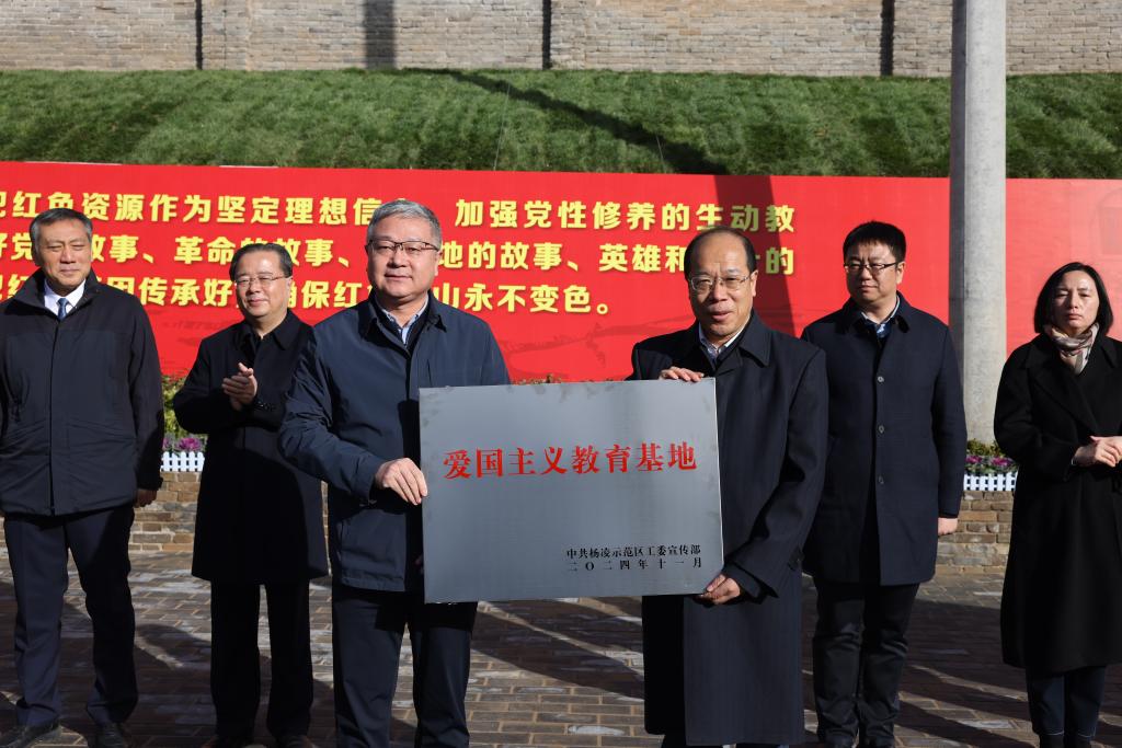 杨凌示范区党工委委员、管委会副主任刘仲山授予旧址“杨凌示范区爱国主义教育基地”铭牌