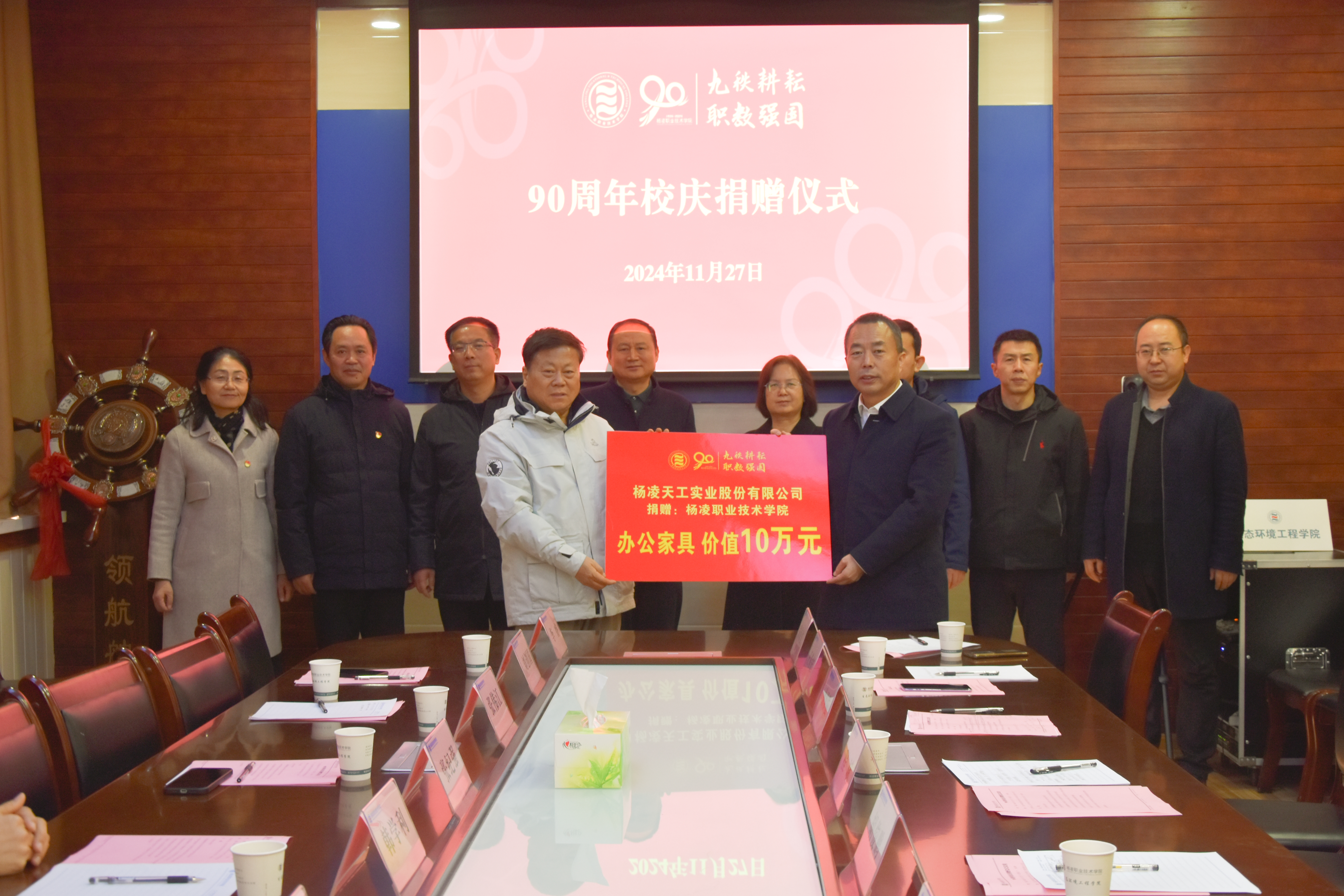 张纪强代表杨凌本地校企合作企业,向学校捐赠价值10万元的办公家具,希望双方在学生实习就业和教师实践锻炼等方面深化合作,让校企合作、产教融合走深走实。