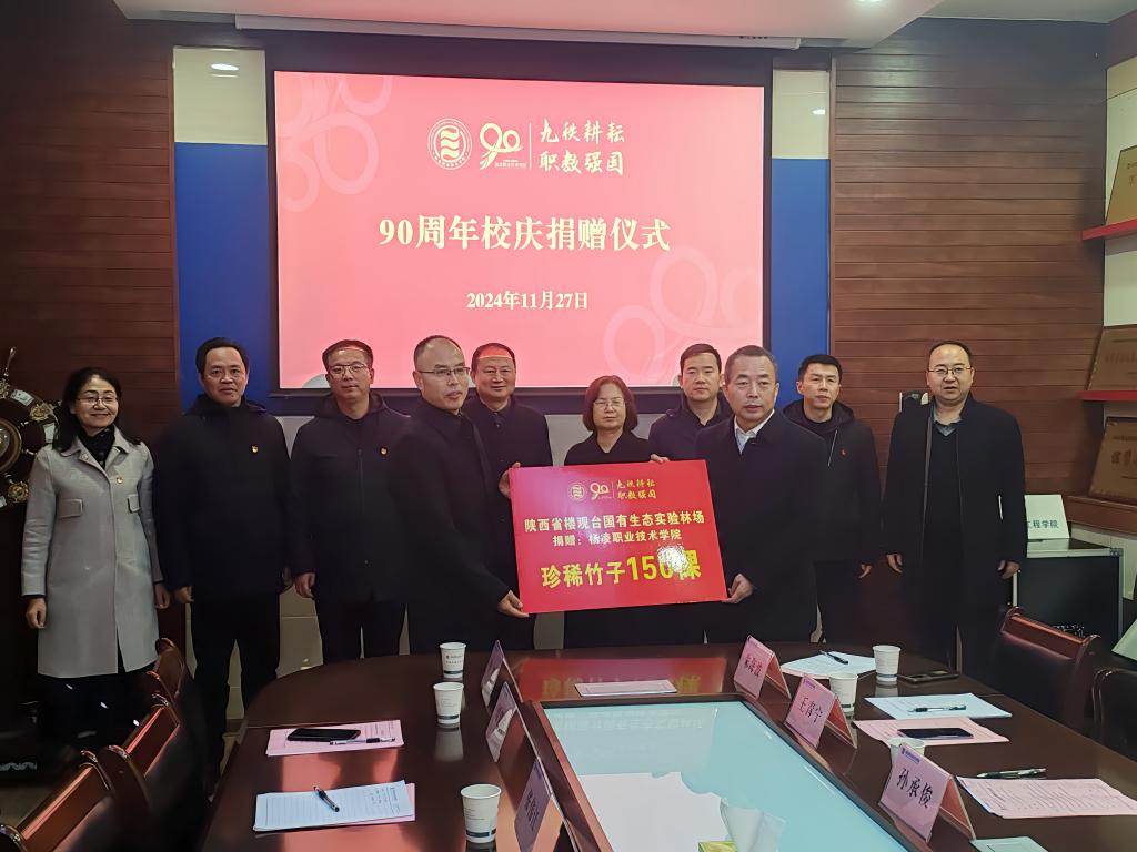韩学利代表陕西省楼观台国有生态实验林场向学校捐赠桂竹、寿竹等珍稀竹子150棵,为滨河新校区环境建设提供支持。他表示,林场和学校在学生实习、科学研究等方面开展合作,感谢学校为林场输送了大批人才,希望双方加强合作,实现互利共赢。