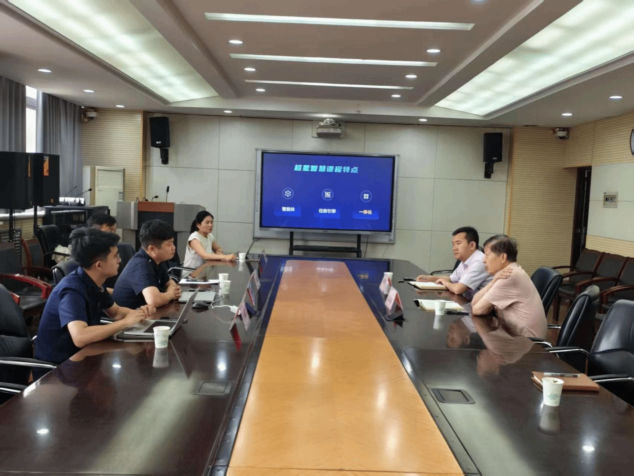 许增平就超星公司近年来的发展及与学校的合作情况作了介绍。双方围绕人工智能赋能教学改革、在线课程建设、专业群建设、资源库建设、教学信息化建设等进行深入交流与探讨。超星公司相关技术人员详细汇报了超星与高校战略合作案例,对课程建设中心构想进行了详细展示。