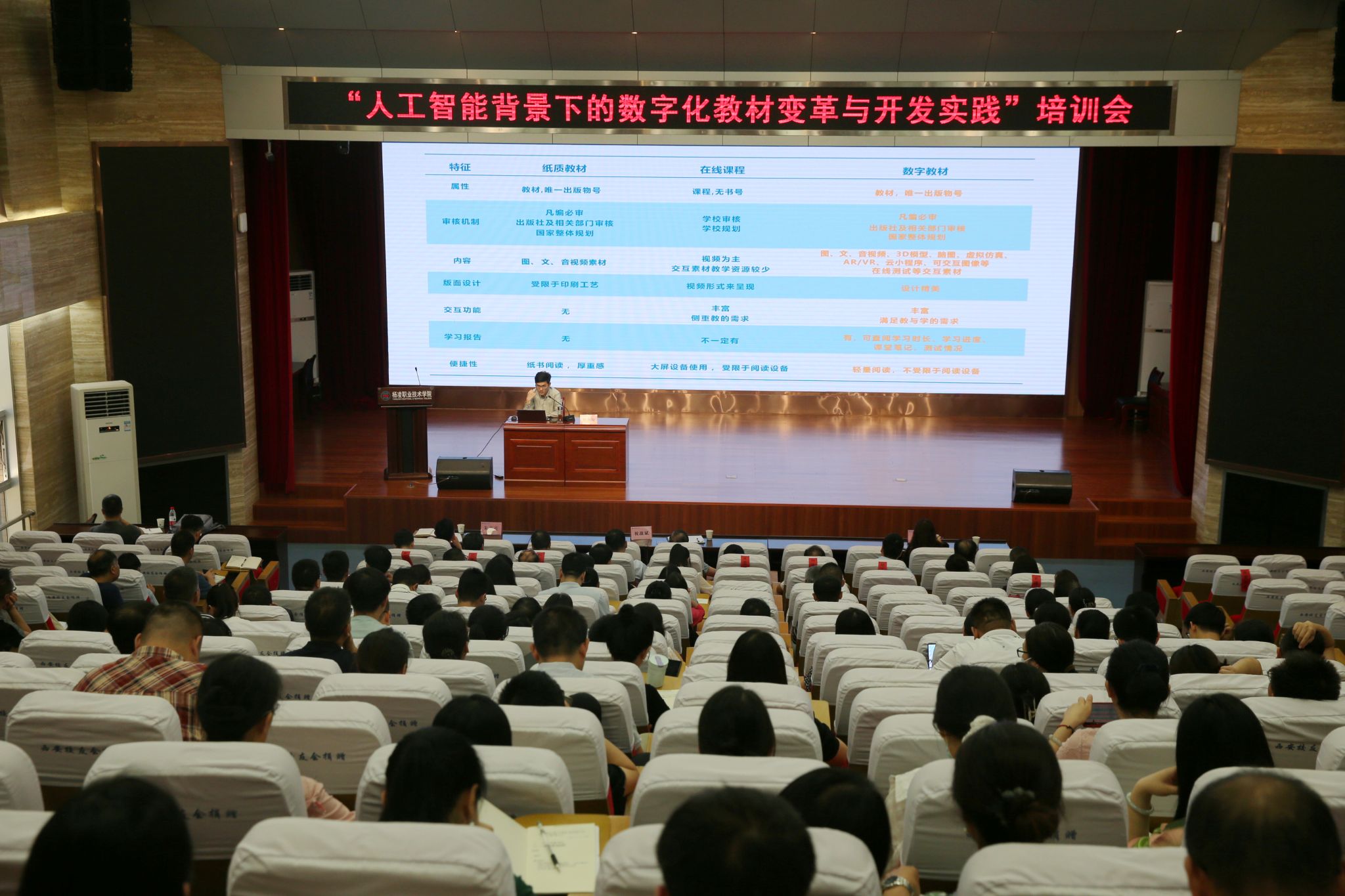 6月12日,学校邀请北京理工大学出版社数字教育出版分社策划编辑杨艳超来校作“人工智能背景下的数字化教材变革与开发实践”主题讲座。副校长祝战斌出席。北京理工大学出版社相关负责人,教务处、各学院(部)负责人、专任老师160余人参加活动。