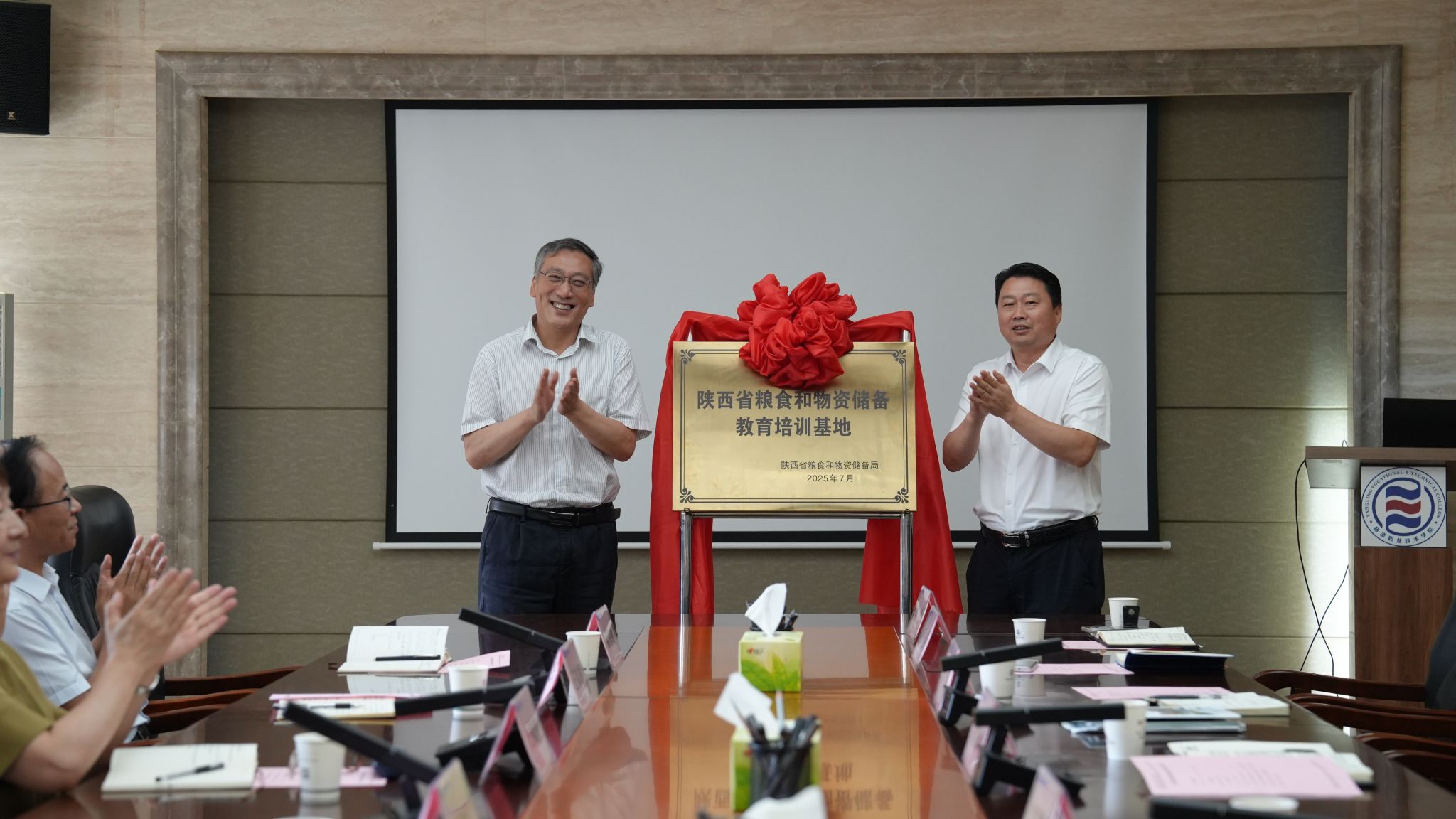 李育江和韩明军共同为陕西省粮食和物资储备教育培训基地揭牌
