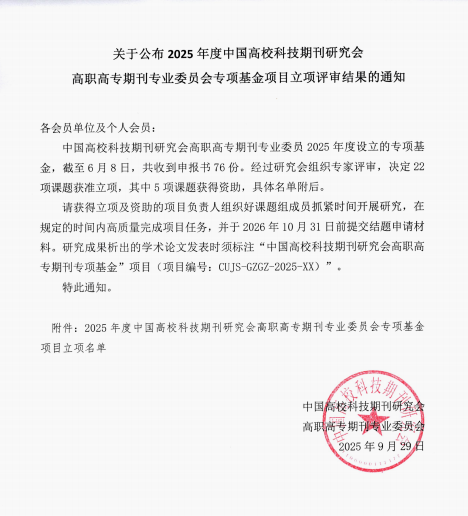 我校获中国高校科技期刊研究会专项研究基金立项