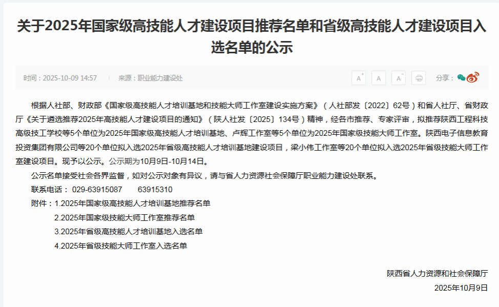 近日,省人社厅、财政厅公示了2025年国家级高技能人才建设项目推荐名单和省级高技能人才建设项目入选名单。学校获批省级高技能人才培训基地、何娜省级技能大师工作室,成为本次高技能人才建设项目中为数不多实现“双丰收”的高校。本次获批后,学校省级高技能人才培训基地增至2个、省级技能大师工作室增至3个。此外,学校还拥有园艺、信息通信网络运行管理、药物制剂、农产品食品检验4个赛项的全国职业技能大赛省级训练基地,三类平台共同构建起“培养-实训-竞赛”一体化的高技能人才培育体系。