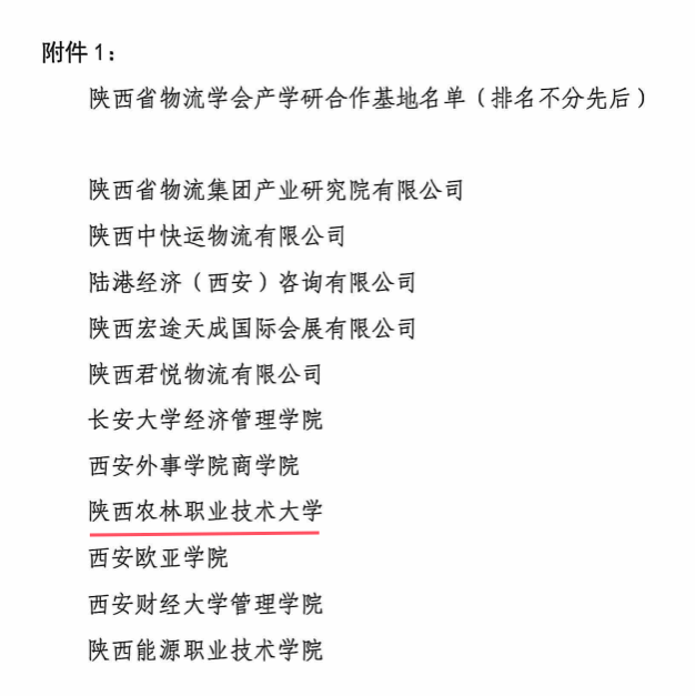 近日,陕西省物流学会公布了2025年度产学研基地入选名单,我校成功获批“陕西省物流学会产学研基地”。