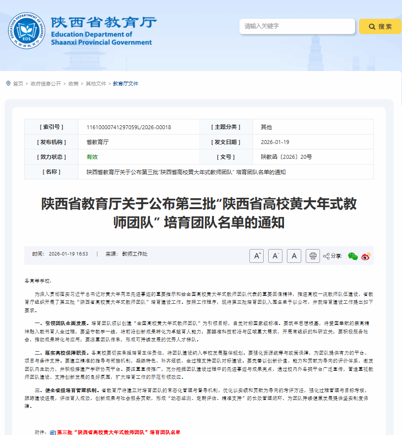 近年来,学校始终将教师队伍建设置于核心战略地位,持续健全团队培育体系,优化培育机制,搭建高水平产学研协同创新平台,为教师团队成长成才提供全方位保障,全力打造一支政治过硬、业务精湛、结构合理的高素质专业化教师队伍。下一步,学校将切实履行主体责任,统筹优质资源向入选团队倾斜,精准赋能团队建设,持续激发团队创新活力与发展后劲。
