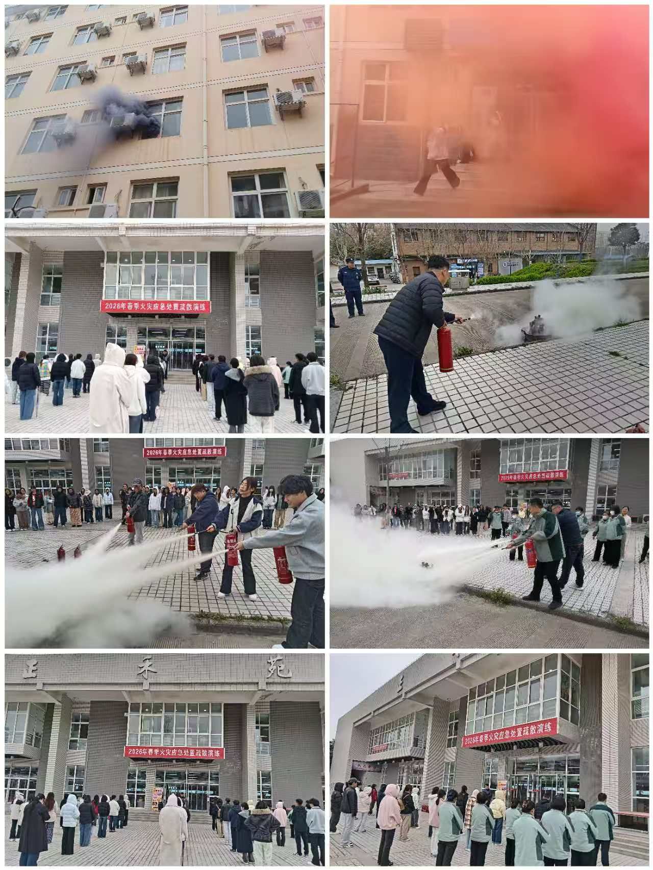 为深入贯彻学校关于做好春季开学有关工作的指示要求,落实“预防为主、防消结合”的工作方针,切实提升师生消防安全意识与应急处置能力,3月23日下午,学校保卫处在西校区205公寓楼组织开展2026年春季火灾应急处置演练,全体公寓学生、辅导员及公寓工作人员参与演练。