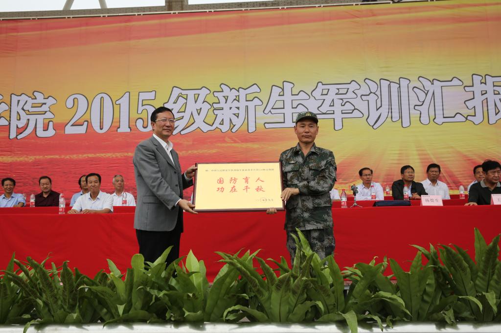 会上,党委副书记任得元向部队赠送了“军校共建,国防育人”的牌匾。副院长张永良宣读了学院关于表彰2015级学生军训先进集体和先进个人的决定。军训团团长杨俊生发表了热情洋溢的讲话。