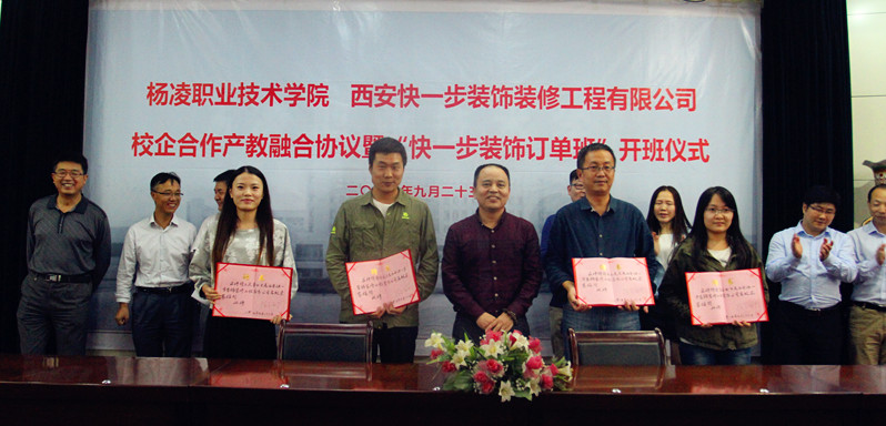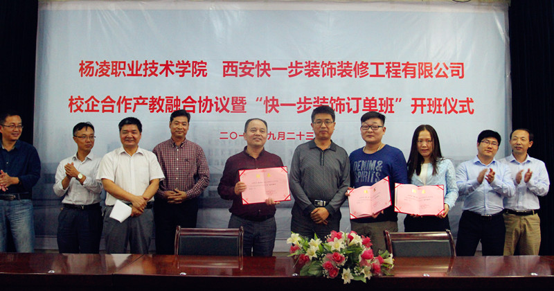 923日下午,生态环境工程分院与快一步公司校企合作产教融合协议签订暨快一步装饰订单班开班仪式在水韵楼二楼报告厅举行。我院副院长张迪、快一步公司总经理徐金诚、人事部经理石发发、行政部经理郝月及我院学保处、教务处负责人,生态分院领导班子、教师代表及订单班学生共60多人参加了开班仪式。开班仪式由生态分院党总支书记主持。