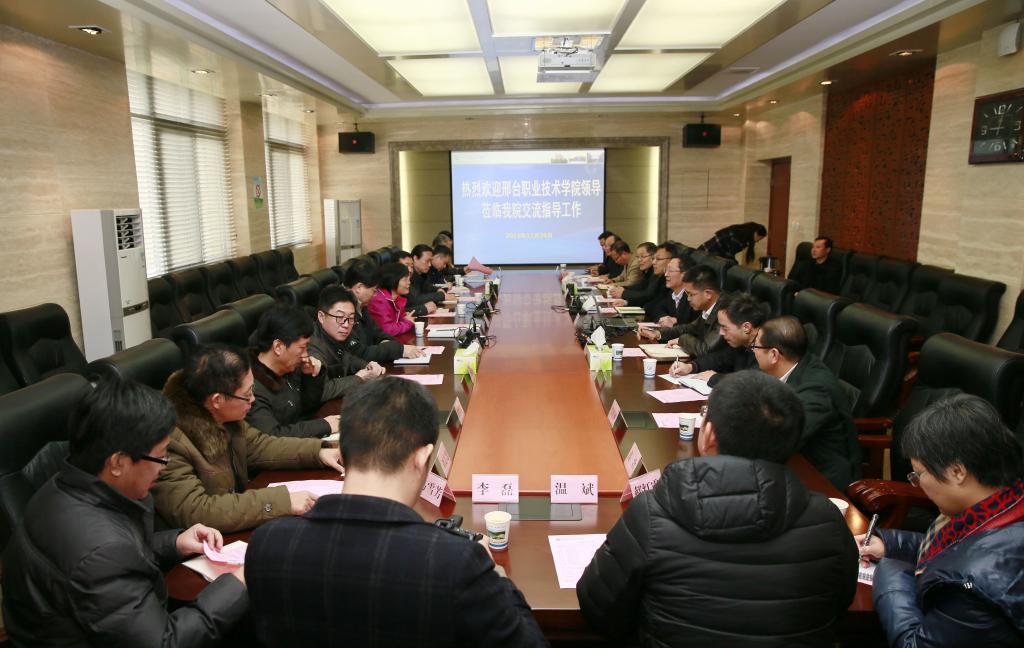 11 26 上午,邢台职业技术学院党委副书记刘彩琴一行14人来我院参观访问。上午900,座谈会在醒钟楼A208会议室举行。我院党委副书记任得元出席,党政办公室、学生与保卫处、招生就业处、信息工程分院、经济与贸易分院、生态环境工程分院、建筑工程分院、思想政治理论课教学部等部门主要负责人参加座谈会。