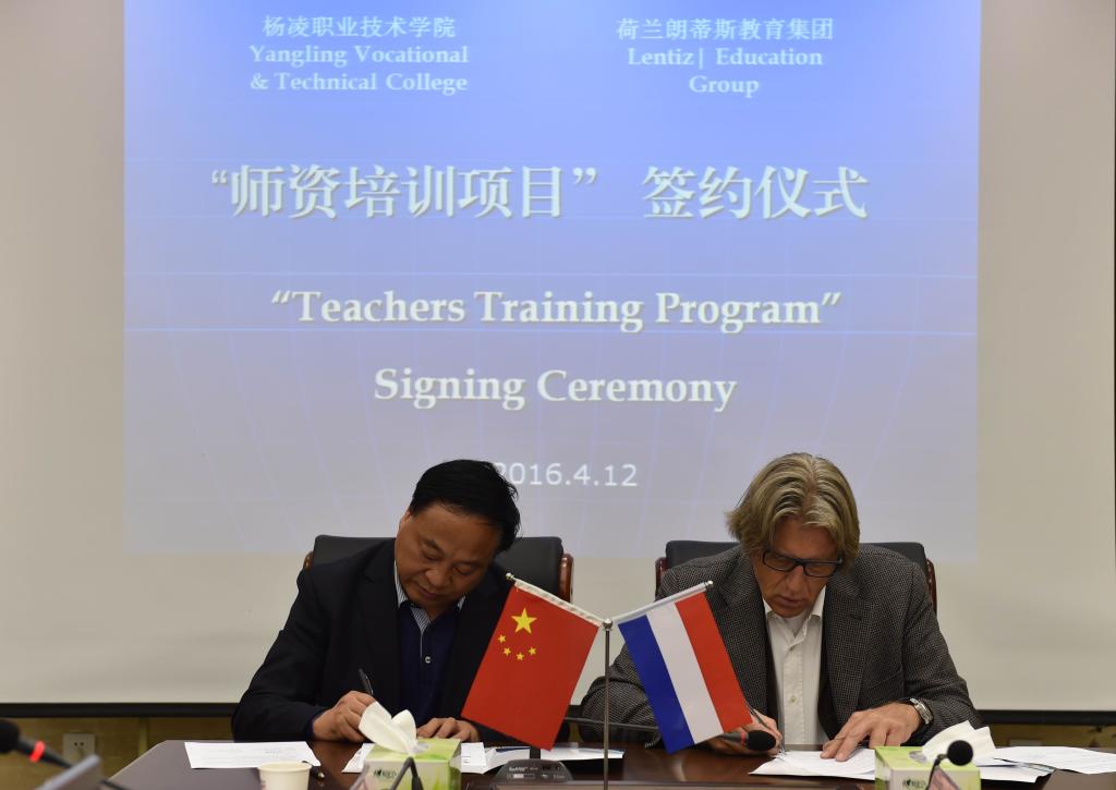412日下午,双方举行了“师资培训项目”签约仪式。仪式上,王周锁与范康普博士签订了赴荷兰高级农业技术培训协议。副院长王晓地与荷方商讨了进一步扩大合作领域事宜,如未来可建设一个三方平台,邀请荷兰农业企业及院校与我院及杨凌示范区一起开展多类型、多层次的深度农业合作等。