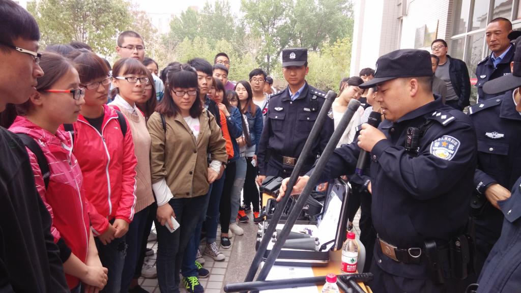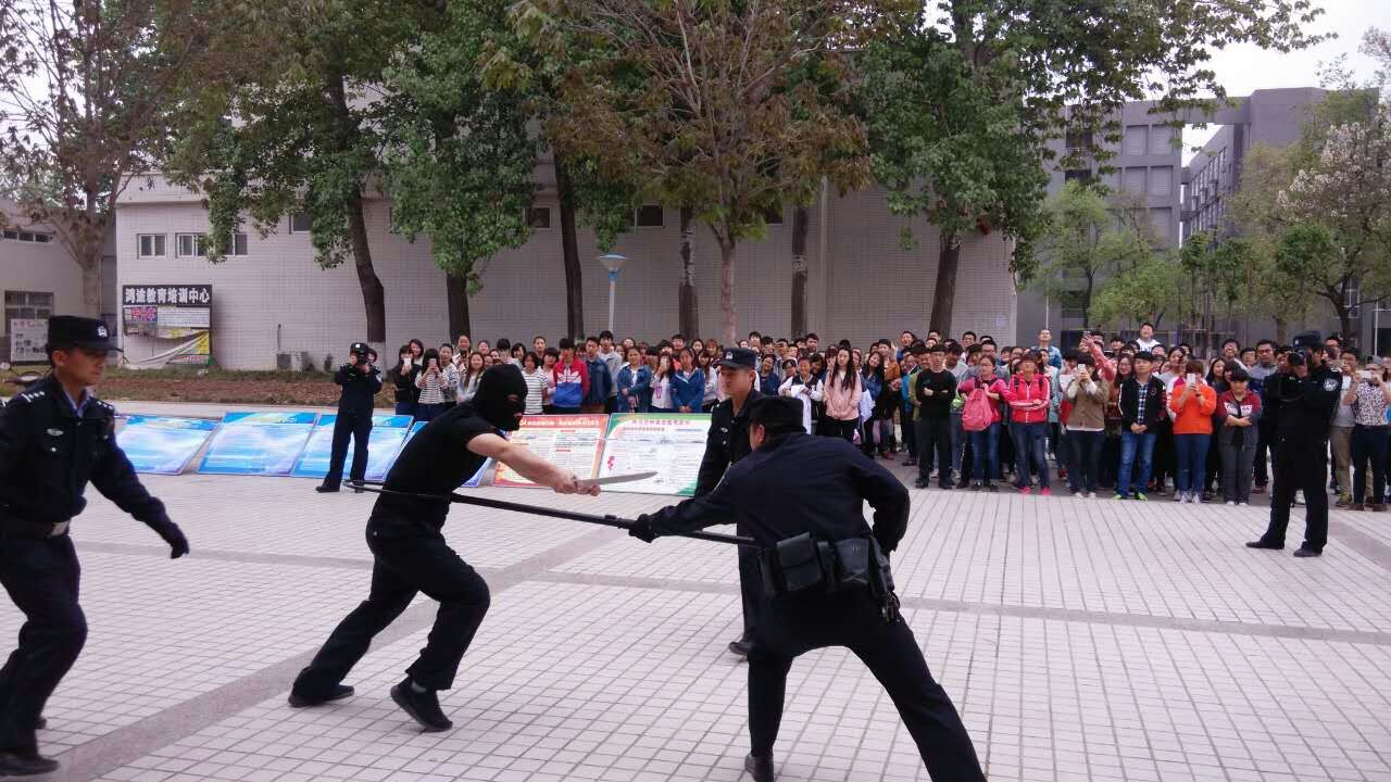 ——开展校园安全防范教育培训活动。414日下午,由杨凌区公安局和学院学生与保卫处共同组织,在西校区举行了校园安全防范教育培训活动。杨凌区公安局副局长霍建科、我院学生与保卫处负责同志、示范区公安局数十名干警、学院校卫队保安和西校区师生代表共计400余人参加。活动现场,公安干警对警务装备、管制刀具一一进行了展示;并结合在校大学生的身心特点,以案说法,紧紧围绕校内外活动安全、消防安全、防止有意伤害等方面内容进行了安全教育;还对校园保安人员进行了治安防范培训,展示和模拟演练了警务器材的使用方法。此外,师生们还结合日常生活中遇到的电信诈骗、抢劫、碰瓷等问题,与公安干警进行了现场交流。公安干警细致、详尽的讲解赢得了师生们由衷的敬佩和阵阵掌声,现场气氛热烈。