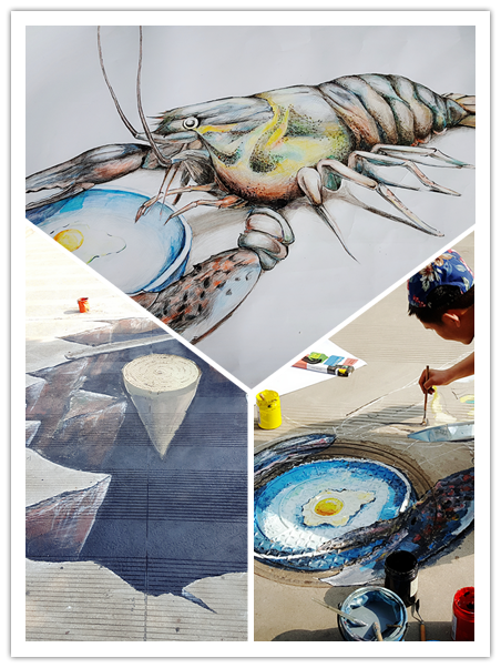 本次比赛,在前期准备中,参赛选手通过3D涂鸦、萌化和拟人化等多种形式,将作品手绘于图纸上,由指导老师筛选出了三十余幅作品;在比赛中,选手们拿出准备好的图案用颜料或喷漆一点一点的在井盖上渲染着,很快就把井盖彩绘成各种图案,使原本单调的井盖变得生动。