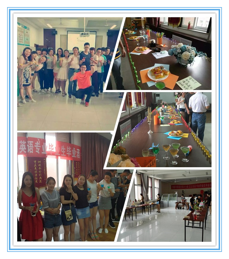 这次毕业酒会根据旅游与管理分院各个专业的特点,整个活动全部由分院学生自己策划、自己组织、自己装饰会场。活动分为3个会场,安排在礼仪形体实训室、前厅客房实训室、餐饮实训室,活动所需的酒水全部由酒店管理专业在校生自己调制。