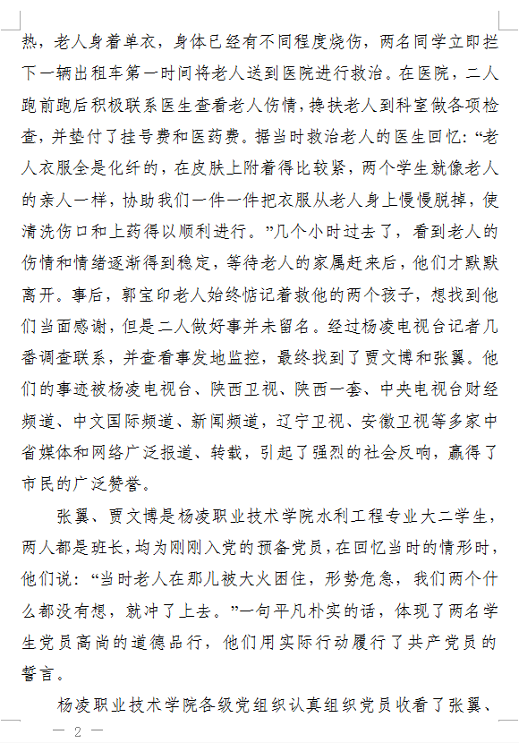 【高教简报】用实际行动践行入党誓言—杨凌职院学生党员勇救七旬老人