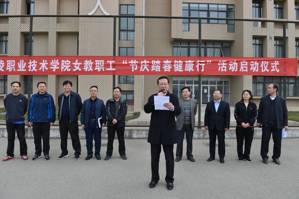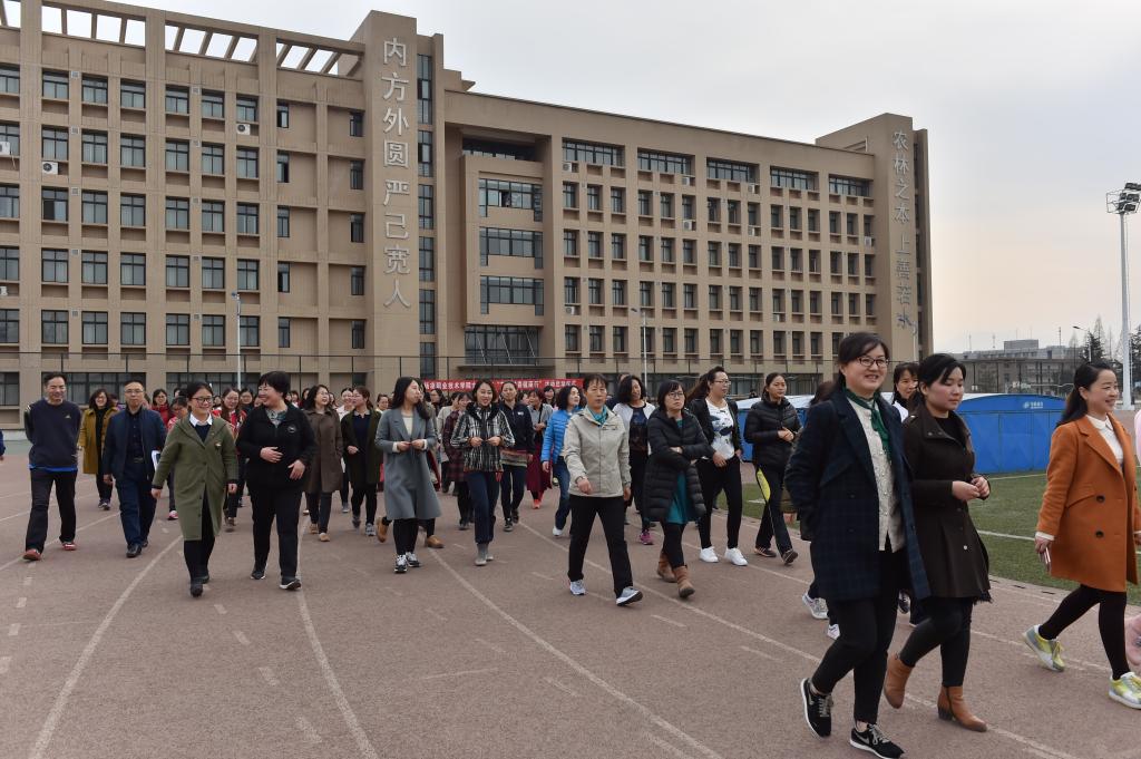 阳春三月,柳丝依依,春回大地,万物复苏。在第107个“三八”国际劳动妇女节来临之际,为进一步丰富我院女教职工业余文化生活,倡导科学、健康的生活方式, 36日下午,院工会在南校区操场组织了女教职工“节庆踏春健康行”活动。党委副书记任得元出席启动仪式,院工会主席、副主席,各基层分会主席及全体女教职工共 400余人参加了本次活动。