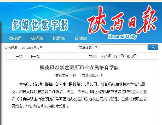 【陕西日报】杨凌职院新建两所职业农民培育学院