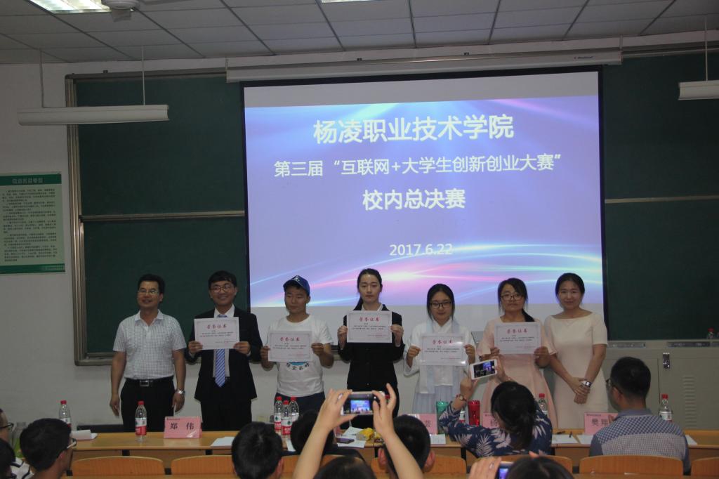 6月22日,第三届中国“互联网+”大学生创新创业大赛杨凌职业技术学院校赛决赛在醒钟楼思辨堂举行,全国高校创新创业投资服务联盟副理事长倪莉芸,全国高校创新创业投资服务联盟理事、翼起飞公司总经理马云龙,中关村慧学云智能文教产业技术创新联盟副秘书长理杨丹等企业专家作为评委参加大赛。