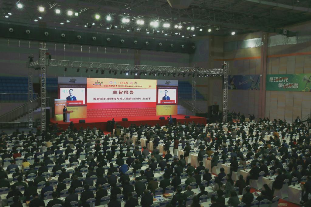 此次会议以“认真学习宣传贯彻党的十九大精神,完善职业教育和培训体系,深化产教融合、校企合作,推进中国特色高等职业教育再创辉煌”为主题,集中展示全国高职院校在坚定方向、特色办学、协调发展、共享开放等方面的经验和成果,共同探讨新时代背景下高等职业教育充分均衡发展的思路和举措。会议由全国高职高专校长联席会议主席董刚主持。