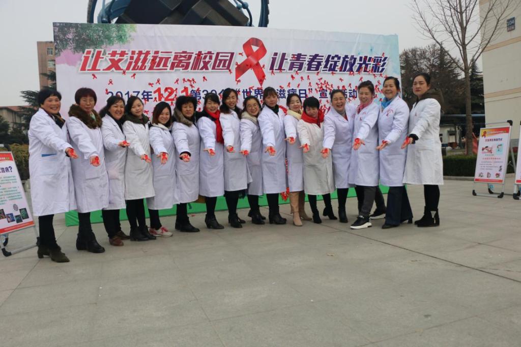 下午,医务人员在三校区继续开展健康宣教,进入机关处室、各分院等分发宣传资料、安全药具,并为义务宣传员佩戴红丝带徽章,受到我院教职工一致好评。