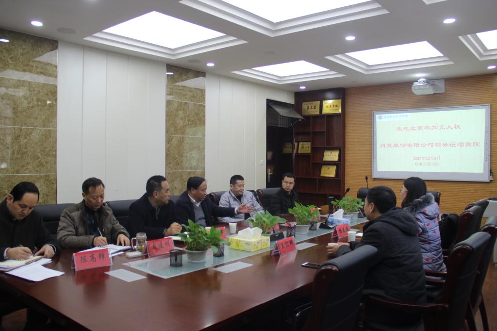12月5日下午,我院与北京韦加无人机科技股份有限公司在机电工程分院会议室就开展无人机方面的人才联合培养进行了交流研讨,院长王周锁、北京韦加无人机科技股份有限公司院校事业部总经理王汇明、项目总监杨春燕,教务处负责人、机电分院负责人、交通分院负责人等参加了此次交流研讨会。
