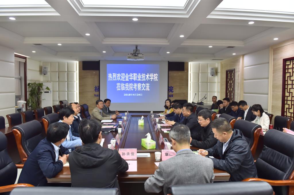 4月24日,金华职业技术学院党委书记胡正明一行20人来我院考察交流。我院党委书记赵曼、党委副书记任得元接待了胡正明一行。