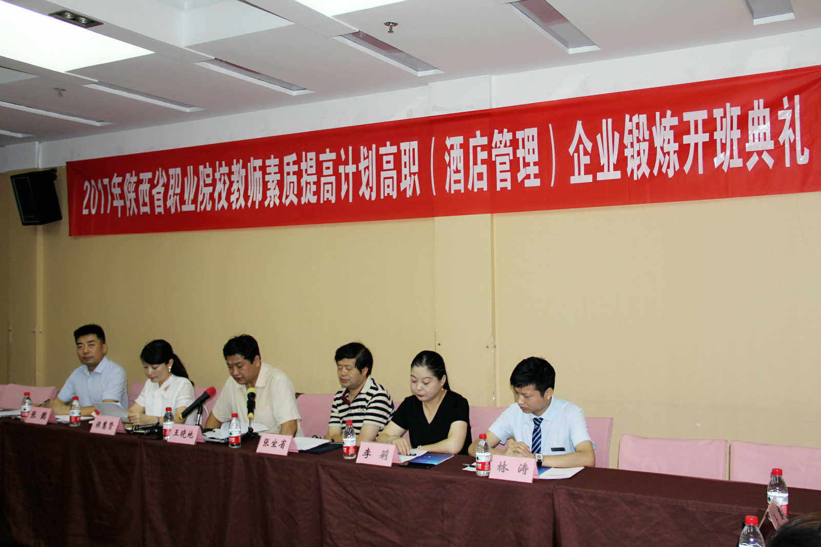 9月4日,由教育部、财政部、省教育厅主办,我院和陕西山水国际旅游文化公司、南方大酒店联合承办的“2017年职业院校教师素质提高计划国家级培训暨教师企业实践项目培训班”开班仪式在西安举行。我院副院长王晓地,以及我院继续教育与培训学院、两个校企单位负责人,来自陕西中高职23所职业院校的30名学员参加了开班仪式。