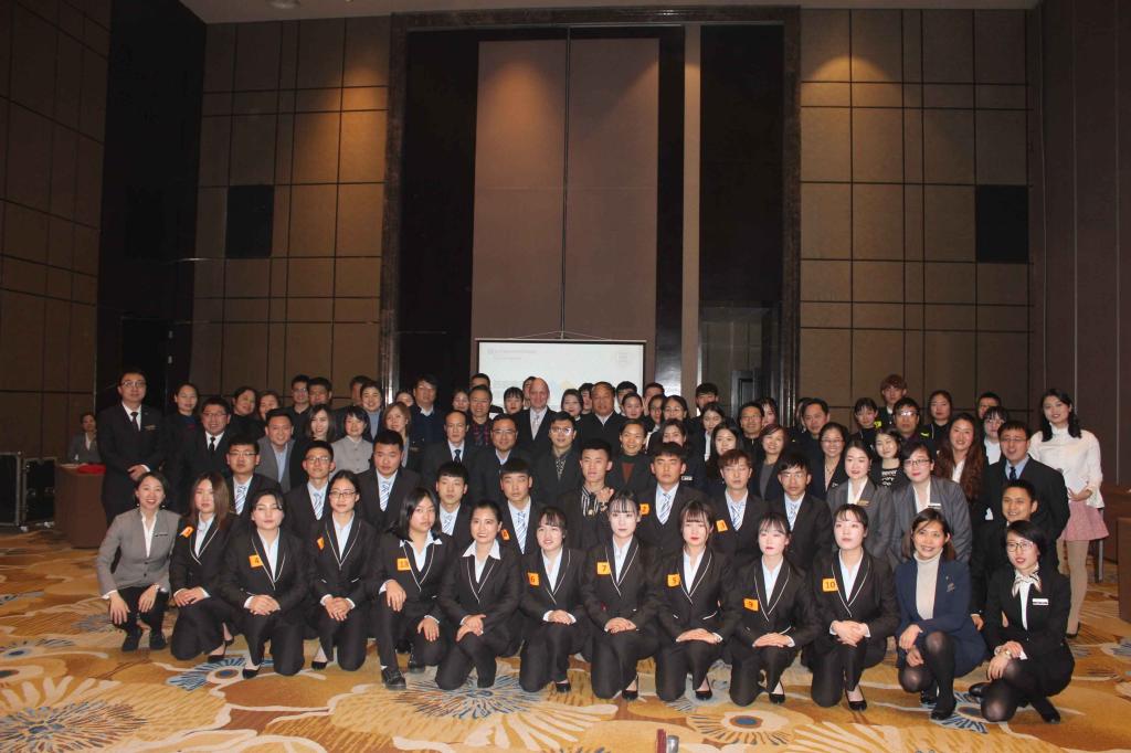 1月11日,旅游与管理分院现代学徒制试点2018级拜师仪式在西安温德姆至尊酒店举行。我院院长王周锁,党委委员、人事处处长拜存有,学院团委及教务处相关负责人,旅管分院全体教师,2017级、2018级温德姆订单班全体同学参加了仪式。
