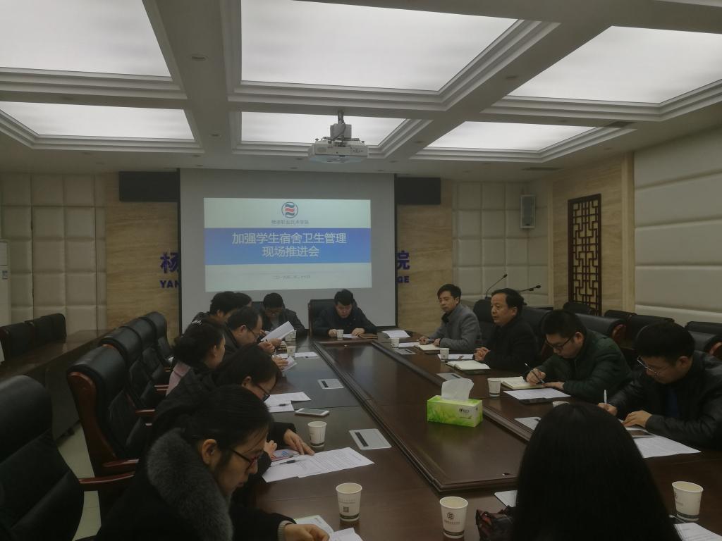 为了强化学生劳动教育,促进学生良好习惯养成,创造干净整洁住宿环境,落实学院开学工作检查会议安排2月27日上午,学生处召集各分院学工办主任、物业公司负责人等20余人,深入三校区各学生公寓开展宿舍卫生检查,召开了宿舍卫生管理工作推进会。