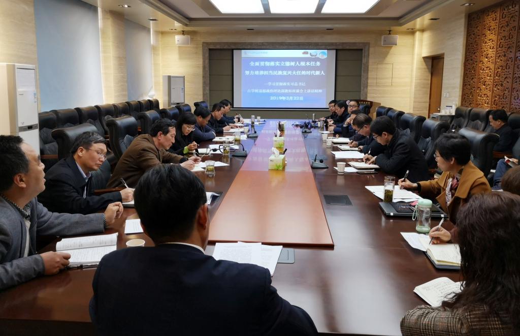 322日下午,我院召开思想政治理论课教师座谈会,专题学习贯彻习近平总书记在学校思政课教师座谈会的重要讲话精神。党委书记陈宁,党委副书记、院长王周锁,党委副书记任得元,副院长张永良,以及党政办、组织部、宣传部、教务处、学工部、团委等部门负责人和思政课教学部全体教师参加了会议。会议由任得元主持。